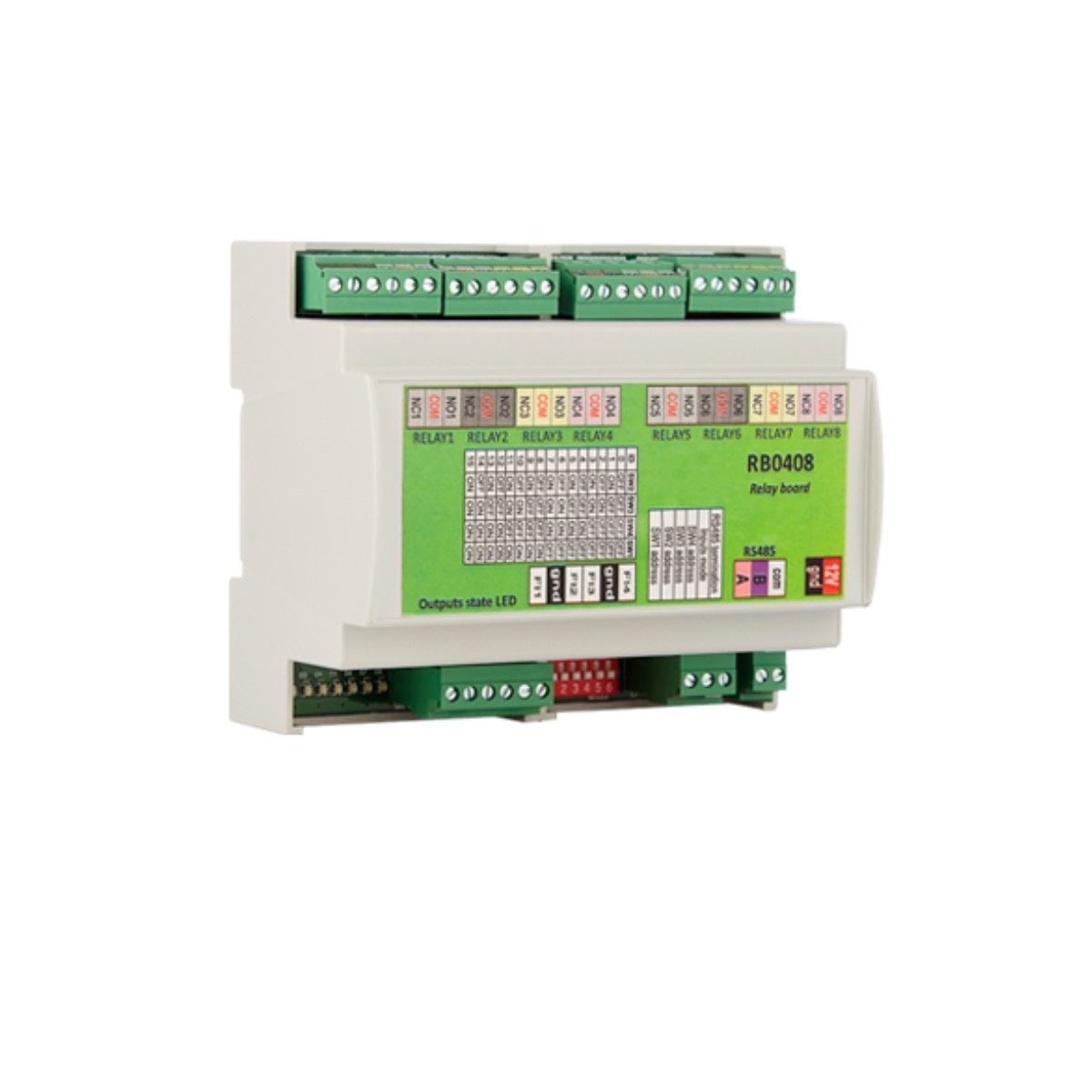 RB0408 yra 8 išėjimų išplėtimo relės plokštė, skirta naudoti kartu su MTPADP-EH-SA serijos artumo klaviatūromis ir skaitytuvais.