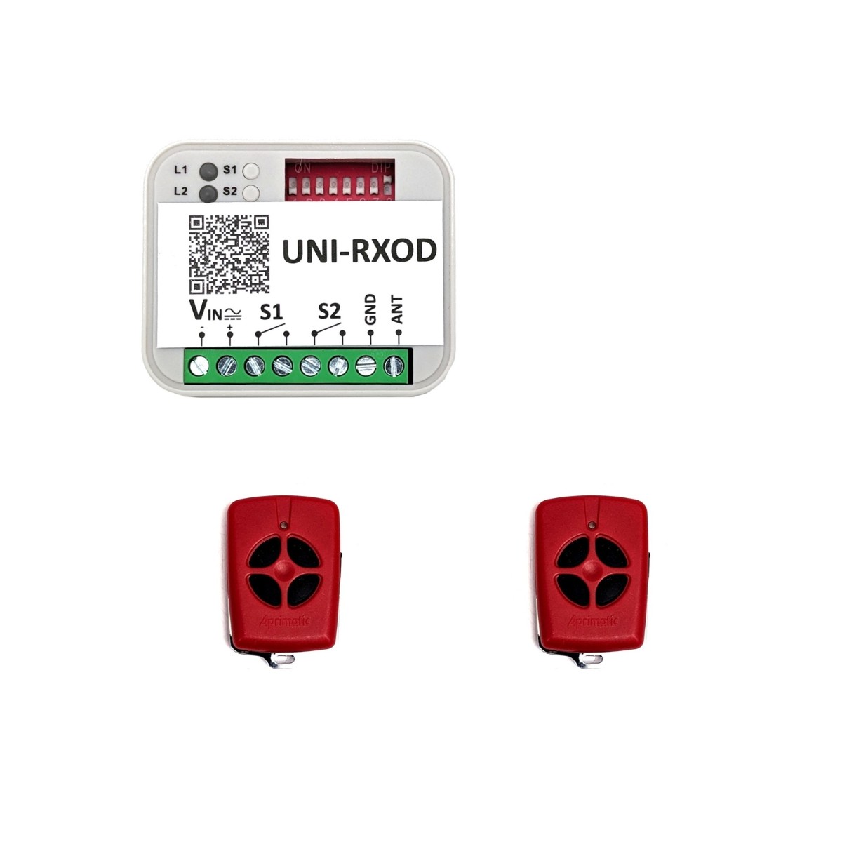 - 2 APRIMATIC controles remotos TM4: Robustos e fiáveis, estes telecomandos oferecem um design ergonómico e uma longa vida útil.